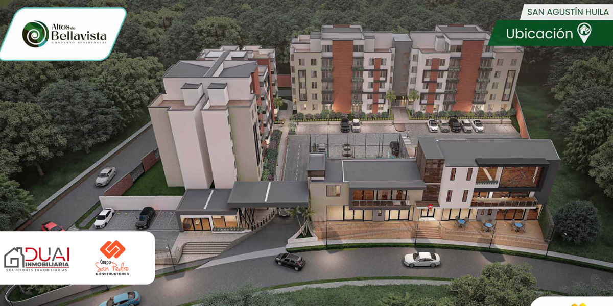 ¡A la Altura de tus sueños! El conjunto residencial Altos de Bellavista cuenta con 2 torres de apartamentos de 5 pisos con apartamentos de 3 alcobas, pent-house con terraza, locales comerciales, parqueaderos internos y externos para visitantes y amplias zonas sociales ofreciendo toda la comodidad en un solo lugar, con una vista privilegiada apreciando el cañon y valle del Rio de La Magdalena y una vista encantadora al municipio de San Agustín, Huila, donde podrás publicar y rentar tu apartamento a traves de plataformas virtuales como airbnb, booking, trivago, entre otras.
