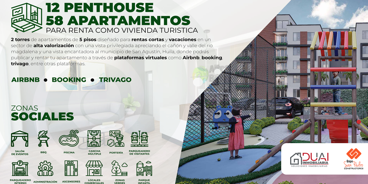 Es una excelente alternativa de inversión cimentada en propiedad raíz, con proyección de alta valorización y renta corta vacacional teniendo en cuenta el posicionamiento de San Agustín, Huila como destino turistico en el Sur Colombiano.